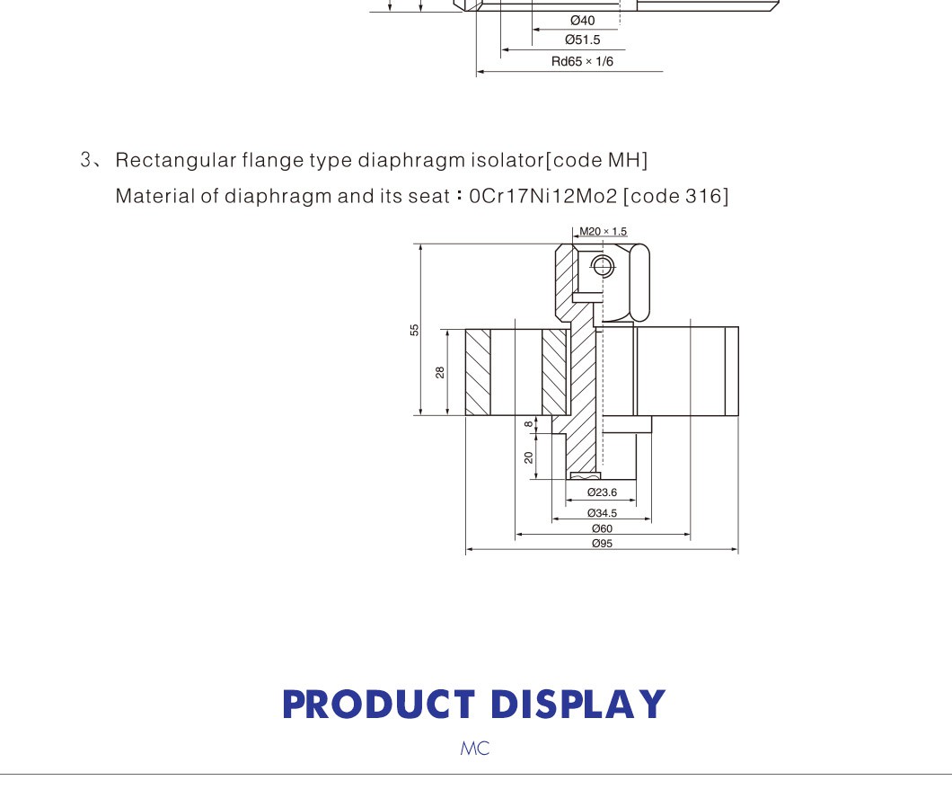 Diaphragm material: 316, 316L