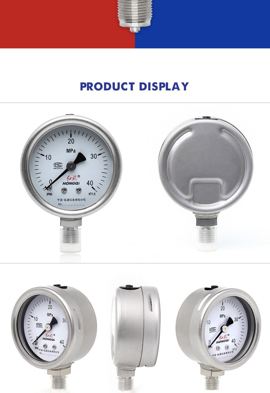 The stainless steel pressure gauge used in oil industry, chemical industry, chemical fibre industry, metallurgical industry, power station and so on. It can measure the pressure of kinds of liquid medium in technical process which has higher require for corrosion-proof and anti vibration characters
